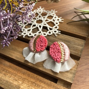 春らしい色で刺繍してみました。そしてフリルがついて可愛らしく。直径21ミリです。