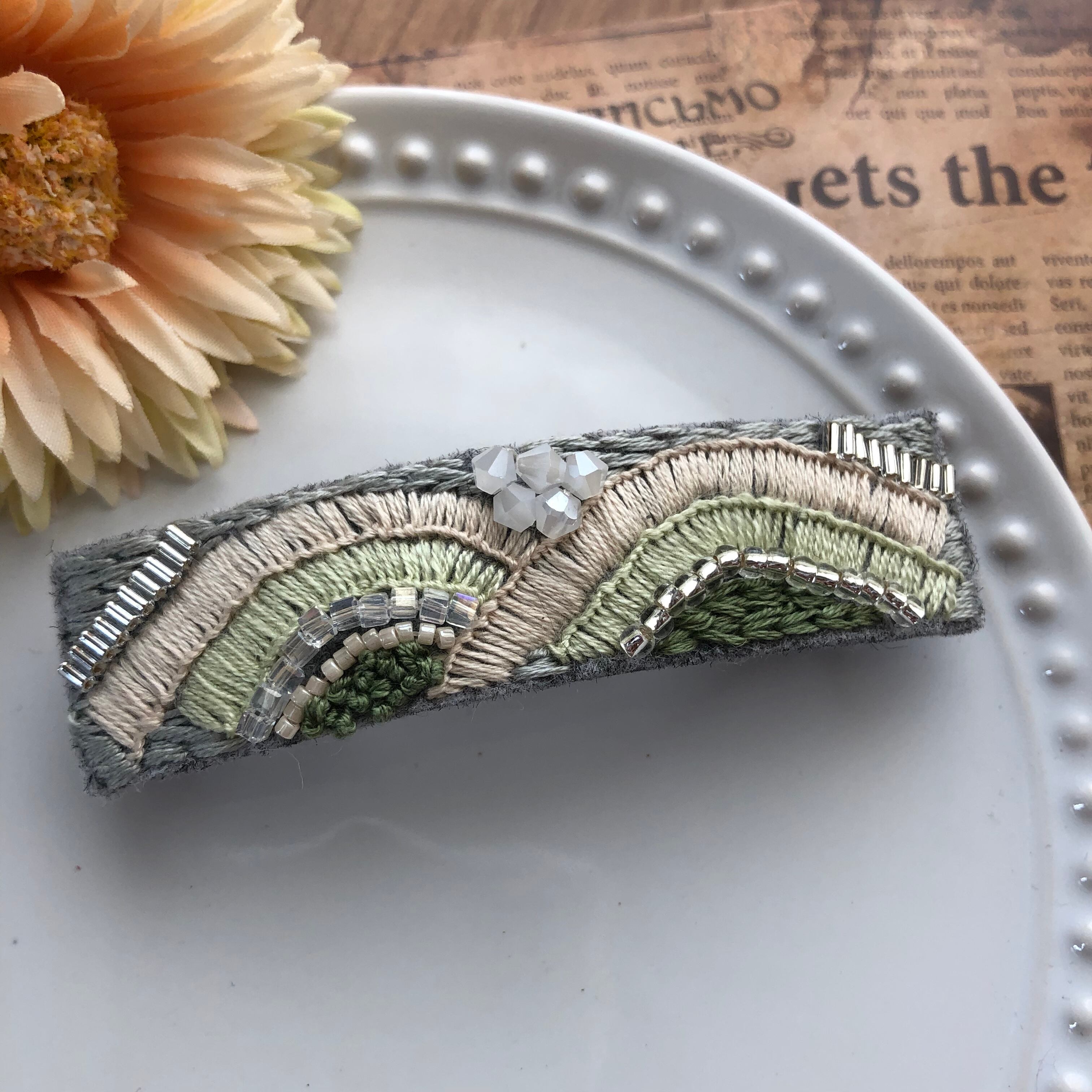 刺繍を施し、ひとつひとつ丁寧にビーズをあしらいました。特別な日にいかがでしょうか。